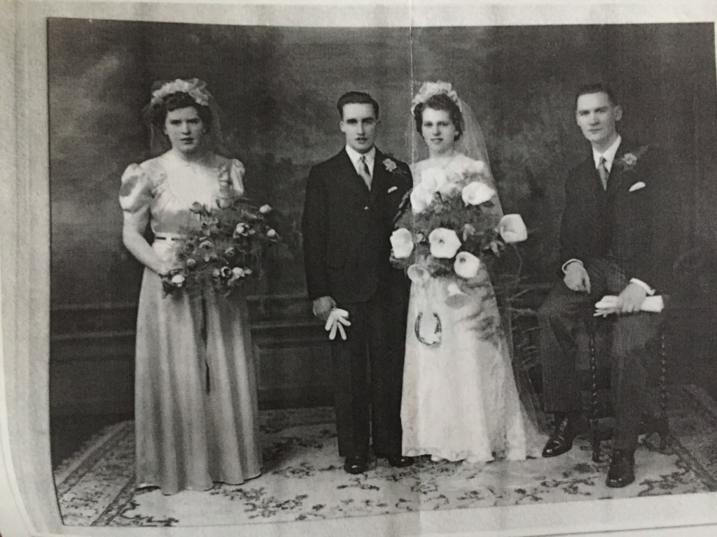 I don’t know how or when Mum came to faith in Christ, but she did, and was involved for the rest of her active life in Bute Hall, along with her sisters Jean and Nessie. These three sisters married the remaining three Hay brothers – John, Bill and Bert, Mum and Dad marrying on 22 March 1945.